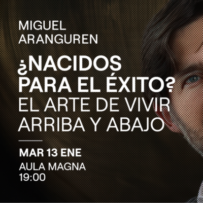 Sesión con Miguel Aranguren, escritor español, que hablará sobre cómo afrontar el éxito y fracaso a lo largo de tu vida personal y profesional.