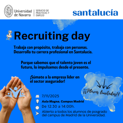 Reconocida como Top Employer y una de las 100 mejores empresas para trabajar según Merco Talento, Grupo Santalucía celebra un Recruiting Day este viernes en el Campus de Madrid.